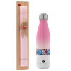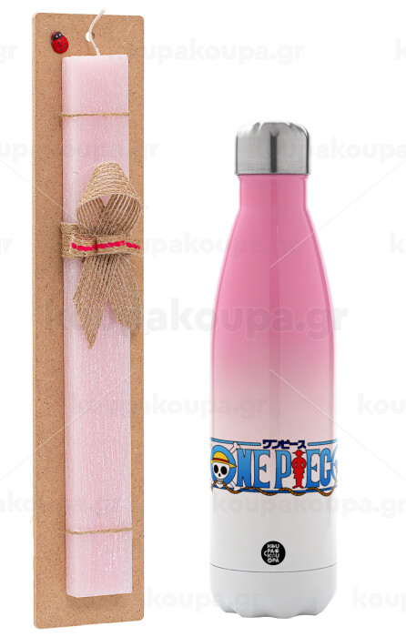 Onepiece logo, Easter Set, Metallic pink/white (Stainless steel) thermos, double-walled, 500ml & aromatic flat Easter candle (30cm) (PINK)