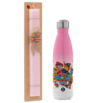 PAW patrol, Easter Set, Metallic pink/white (Stainless steel) thermos, double-walled, 500ml & aromatic flat Easter candle (30cm) (PINK)