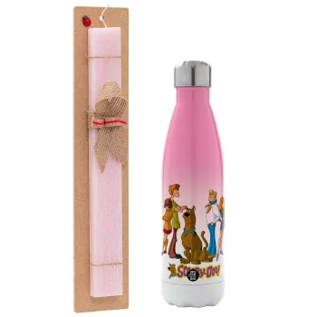 Scooby Doo Characters, Easter Set, Metallic pink/white (Stainless steel) thermos, double-walled, 500ml & aromatic flat Easter candle (30cm) (PINK)