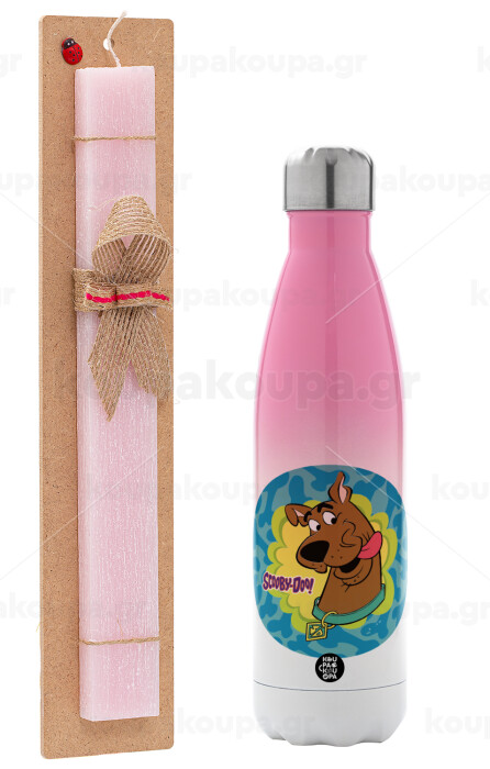 Scooby Doo, Easter Set, Metallic pink/white (Stainless steel) thermos, double-walled, 500ml & aromatic flat Easter candle (30cm) (PINK)