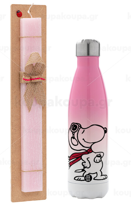Snoopy ο πιλότος, Easter Set, Metallic pink/white (Stainless steel) thermos, double-walled, 500ml & aromatic flat Easter candle (30cm) (PINK)