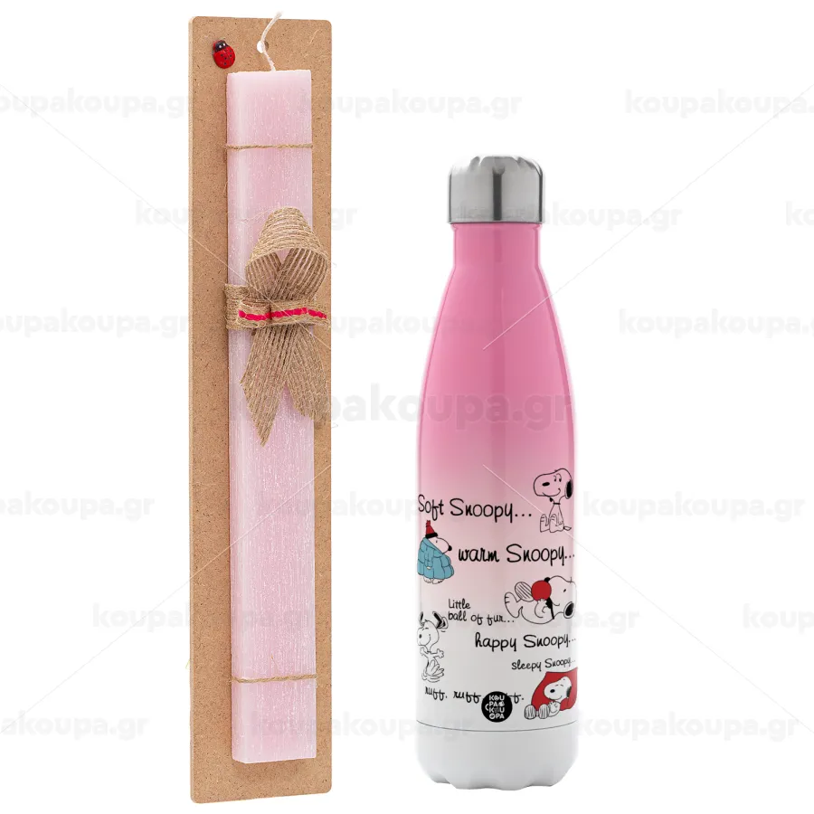 Snoopy manual, Easter Set, Metallic pink/white (Stainless steel) thermos, double-walled, 500ml & aromatic flat Easter candle (30cm) (PINK)