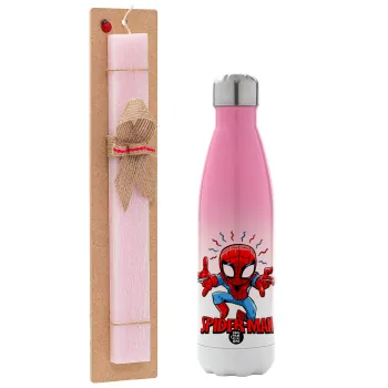 Spiderman flying, Easter Set, Metallic pink/white (Stainless steel) thermos, double-walled, 500ml & aromatic flat Easter candle (30cm) (PINK)