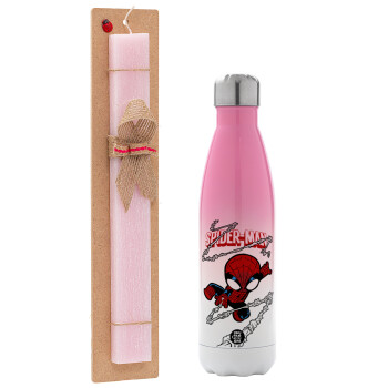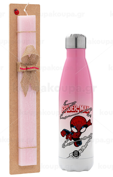 Spiderman kid, Easter Set, Metallic pink/white (Stainless steel) thermos, double-walled, 500ml & aromatic flat Easter candle (30cm) (PINK)