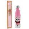 SpongeBob SquarePants smile, Easter Set, Metallic pink/white (Stainless steel) thermos, double-walled, 500ml & aromatic flat Easter candle (30cm) (PINK)