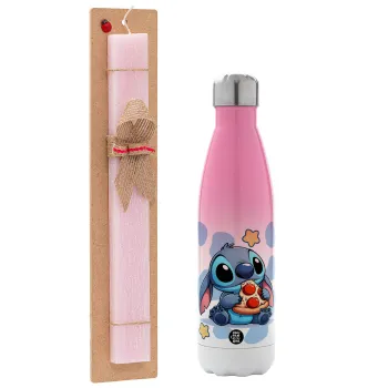 Stitch Pizza, Easter Set, Metallic pink/white (Stainless steel) thermos, double-walled, 500ml & aromatic flat Easter candle (30cm) (PINK)