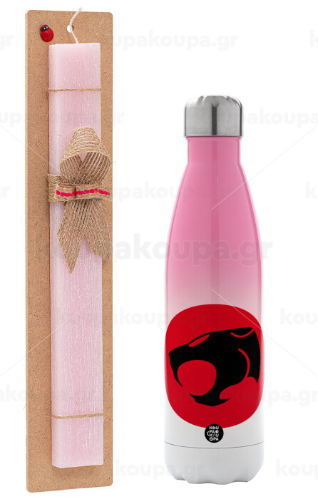 Thundercats, Easter Set, Metallic pink/white (Stainless steel) thermos, double-walled, 500ml & aromatic flat Easter candle (30cm) (PINK)