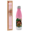 Vaiana, Easter Set, Metallic pink/white (Stainless steel) thermos, double-walled, 500ml & aromatic flat Easter candle (30cm) (PINK)