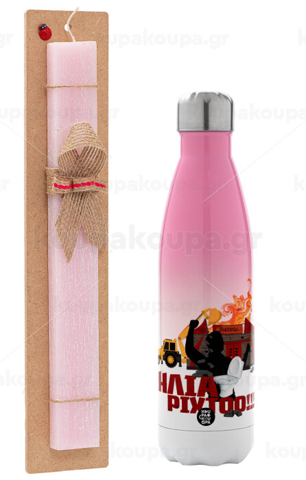 Ηλία ρίχτοοο!!!, Easter Set, Metallic pink/white (Stainless steel) thermos, double-walled, 500ml & aromatic flat Easter candle (30cm) (PINK)