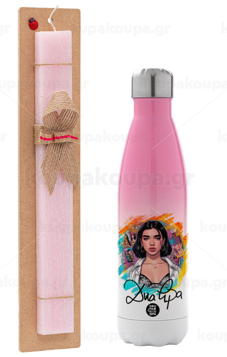 Dua lipa, Easter Set, Metallic pink/white (Stainless steel) thermos, double-walled, 500ml & aromatic flat Easter candle (30cm) (PINK)