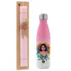 Dua lipa, Easter Set, Metallic pink/white (Stainless steel) thermos, double-walled, 500ml & aromatic flat Easter candle (30cm) (PINK)