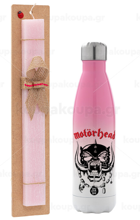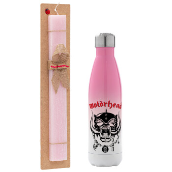 motorhead, Easter Set, Metallic pink/white (Stainless steel) thermos, double-walled, 500ml & aromatic flat Easter candle (30cm) (PINK)