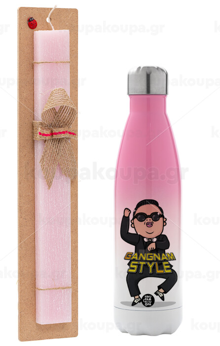 PSY - GANGNAM STYLE, Easter Set, Metallic pink/white (Stainless steel) thermos, double-walled, 500ml & aromatic flat Easter candle (30cm) (PINK)