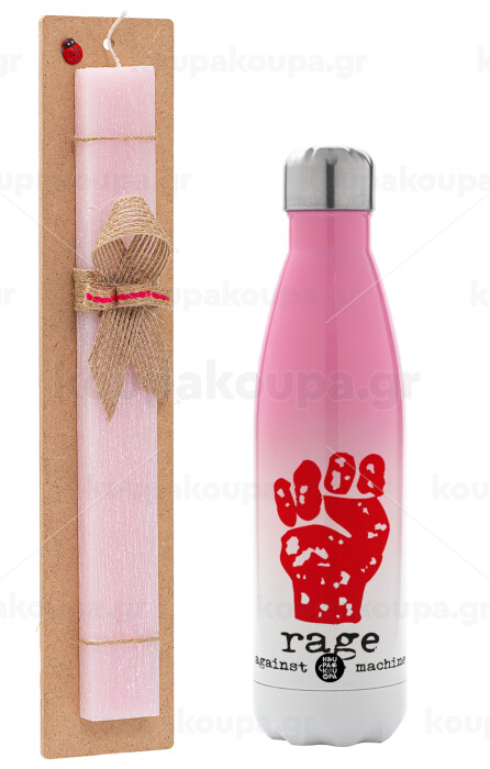 Rage against the machine, Easter Set, Metallic pink/white (Stainless steel) thermos, double-walled, 500ml & aromatic flat Easter candle (30cm) (PINK)