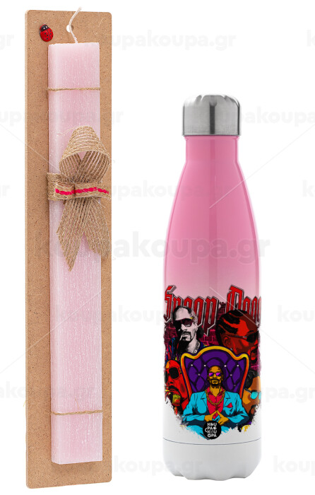 Snoop Dogg, Easter Set, Metallic pink/white (Stainless steel) thermos, double-walled, 500ml & aromatic flat Easter candle (30cm) (PINK)