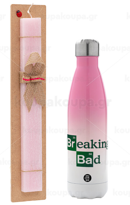 Breaking Bad, Easter Set, Metallic pink/white (Stainless steel) thermos, double-walled, 500ml & aromatic flat Easter candle (30cm) (PINK)