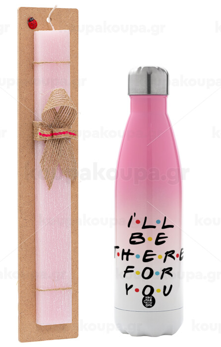 Friends i i'll be there for you, Easter Set, Metallic pink/white (Stainless steel) thermos, double-walled, 500ml & aromatic flat Easter candle (30cm) (PINK)