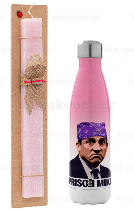 Prison Mike The office, Easter Set, Metallic pink/white (Stainless steel) thermos, double-walled, 500ml & aromatic flat Easter candle (30cm) (PINK)