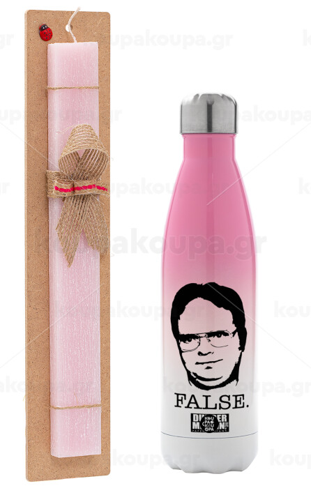 The office Dwight, Easter Set, Metallic pink/white (Stainless steel) thermos, double-walled, 500ml & aromatic flat Easter candle (30cm) (PINK)