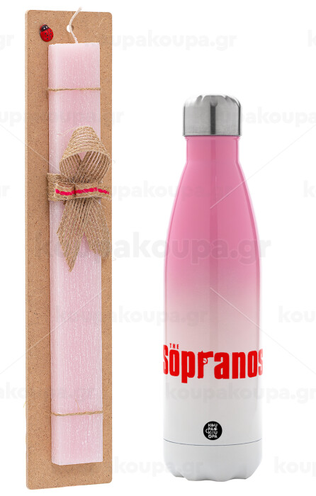 The Sopranos, Easter Set, Metallic pink/white (Stainless steel) thermos, double-walled, 500ml & aromatic flat Easter candle (30cm) (PINK)