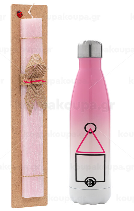 The squid game ojingeo, Easter Set, Metallic pink/white (Stainless steel) thermos, double-walled, 500ml & aromatic flat Easter candle (30cm) (PINK)
