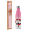 Punch, Easter Set, Metallic pink/white (Stainless steel) thermos, double-walled, 500ml & aromatic flat Easter candle (30cm) (PINK)