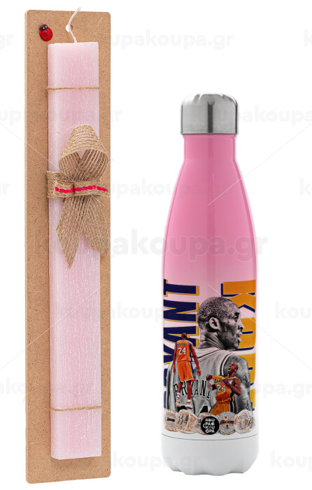 Kobe Bryant, Easter Set, Metallic pink/white (Stainless steel) thermos, double-walled, 500ml & aromatic flat Easter candle (30cm) (PINK)