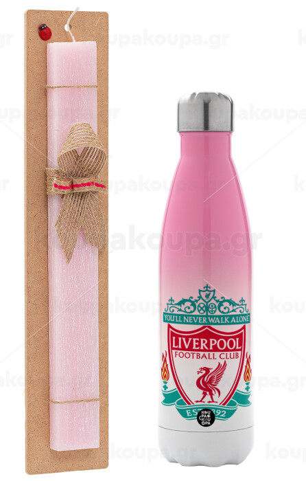 Liverpool, Easter Set, Metallic pink/white (Stainless steel) thermos, double-walled, 500ml & aromatic flat Easter candle (30cm) (PINK)