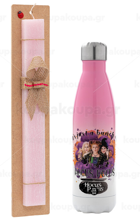 Hocus Pocus, Easter Set, Metallic pink/white (Stainless steel) thermos, double-walled, 500ml & aromatic flat Easter candle (30cm) (PINK)