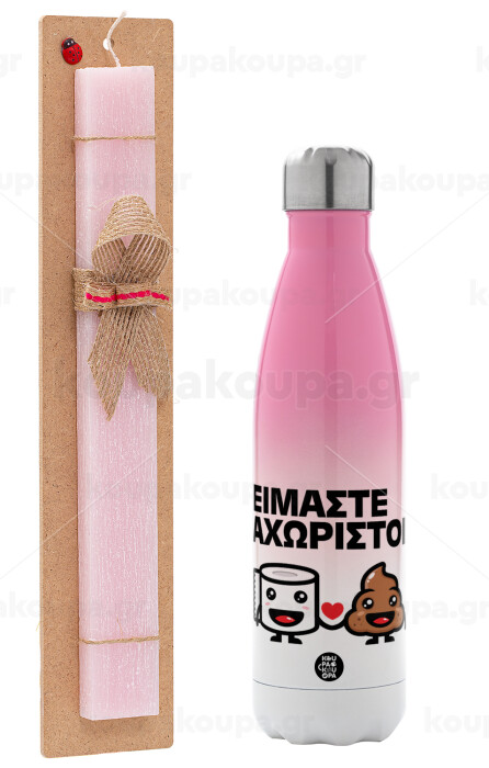 Είμαστε αχώριστοι, Easter Set, Metallic pink/white (Stainless steel) thermos, double-walled, 500ml & aromatic flat Easter candle (30cm) (PINK)