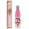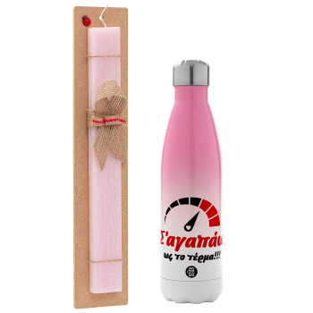 Σ΄ αγαπώ ως το τέρμα!!!, Easter Set, Metallic pink/white (Stainless steel) thermos, double-walled, 500ml & aromatic flat Easter candle (30cm) (PINK)