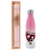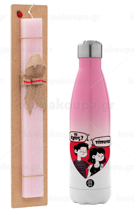 Τι έχεις? Τίποτα!, Easter Set, Metallic pink/white (Stainless steel) thermos, double-walled, 500ml & aromatic flat Easter candle (30cm) (PINK)
