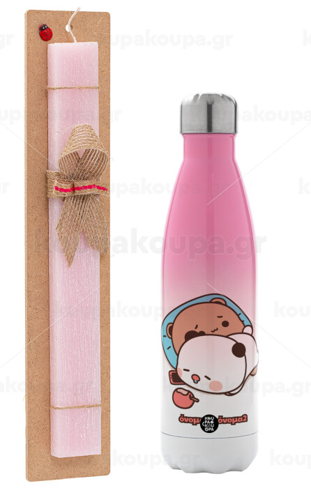 bubu + dudu, Easter Set, Metallic pink/white (Stainless steel) thermos, double-walled, 500ml & aromatic flat Easter candle (30cm) (PINK)