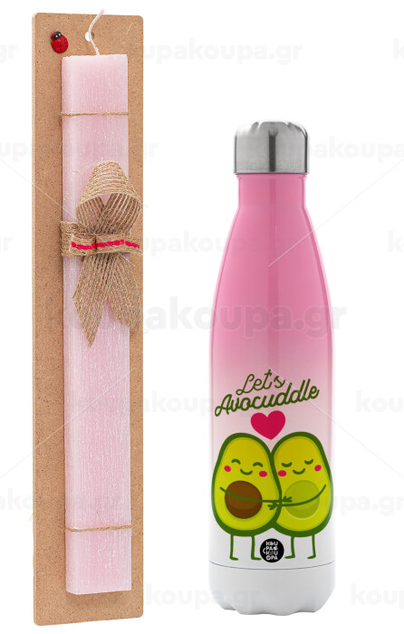Let's avocuddle, Easter Set, Metallic pink/white (Stainless steel) thermos, double-walled, 500ml & aromatic flat Easter candle (30cm) (PINK)