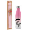 Mr right Mustache, Easter Set, Metallic pink/white (Stainless steel) thermos, double-walled, 500ml & aromatic flat Easter candle (30cm) (PINK)