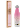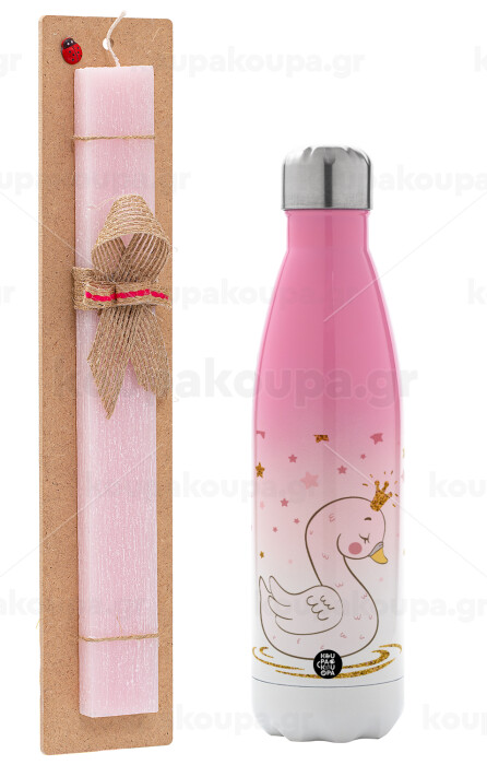Crowned swan, Easter Set, Metallic pink/white (Stainless steel) thermos, double-walled, 500ml & aromatic flat Easter candle (30cm) (PINK)