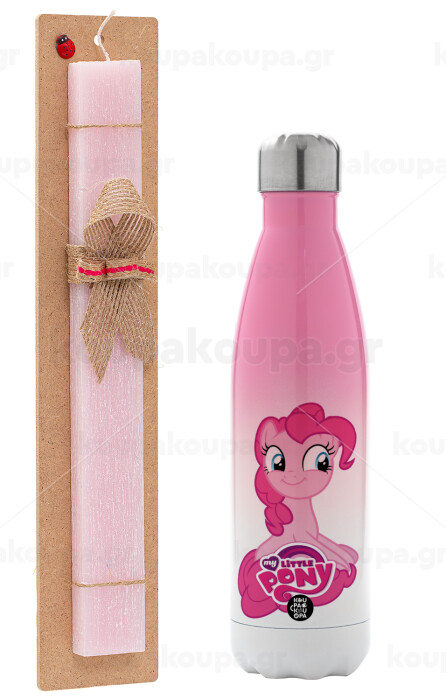My Little Pony, Easter Set, Metallic pink/white (Stainless steel) thermos, double-walled, 500ml & aromatic flat Easter candle (30cm) (PINK)