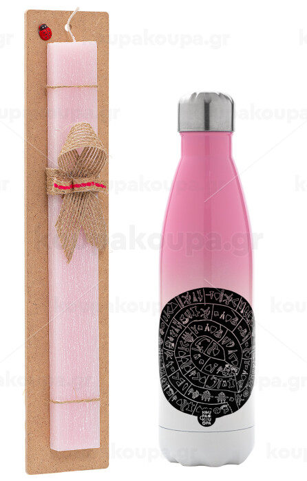 Δίσκος Φαιστού, Easter Set, Metallic pink/white (Stainless steel) thermos, double-walled, 500ml & aromatic flat Easter candle (30cm) (PINK)