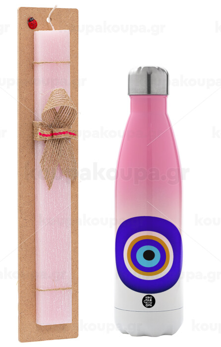 Το μάτι, Easter Set, Metallic pink/white (Stainless steel) thermos, double-walled, 500ml & aromatic flat Easter candle (30cm) (PINK)