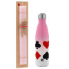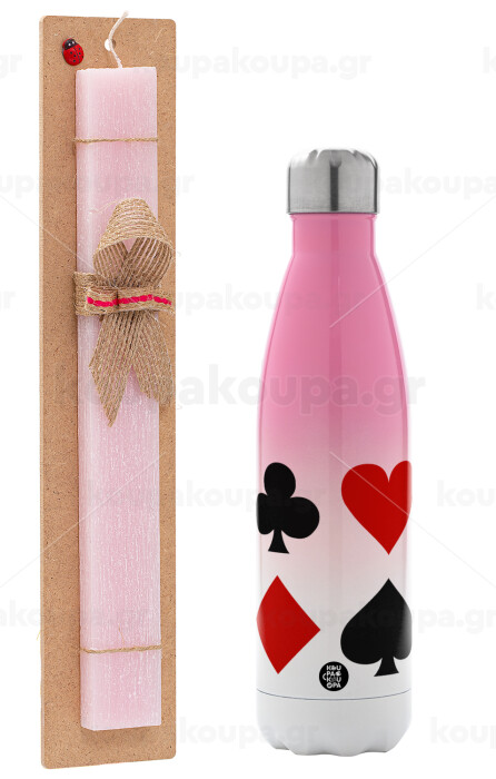Τραπουλόχαρτα, Easter Set, Metallic pink/white (Stainless steel) thermos, double-walled, 500ml & aromatic flat Easter candle (30cm) (PINK)