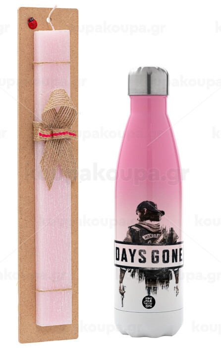 Day's Gone, Easter Set, Metallic pink/white (Stainless steel) thermos, double-walled, 500ml & aromatic flat Easter candle (30cm) (PINK)