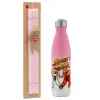 Street fighter, Easter Set, Metallic pink/white (Stainless steel) thermos, double-walled, 500ml & aromatic flat Easter candle (30cm) (PINK)
