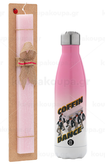 Coffin Dance!, Easter Set, Metallic pink/white (Stainless steel) thermos, double-walled, 500ml & aromatic flat Easter candle (30cm) (PINK)