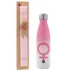 FEMALE, Easter Set, Metallic pink/white (Stainless steel) thermos, double-walled, 500ml & aromatic flat Easter candle (30cm) (PINK)