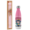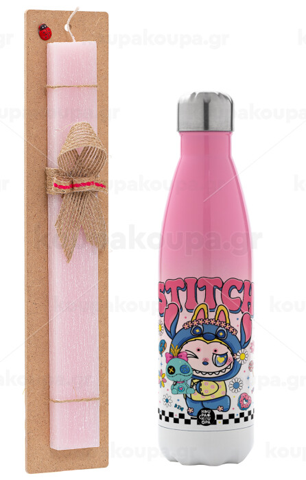 Labubu Stitch, Easter Set, Metallic pink/white (Stainless steel) thermos, double-walled, 500ml & aromatic flat Easter candle (30cm) (PINK)