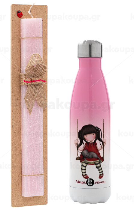 Santoro, Easter Set, Metallic pink/white (Stainless steel) thermos, double-walled, 500ml & aromatic flat Easter candle (30cm) (PINK)