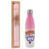 Why Don't You Blow Me Funny, Easter Set, Metallic pink/white (Stainless steel) thermos, double-walled, 500ml & aromatic flat Easter candle (30cm) (PINK)
