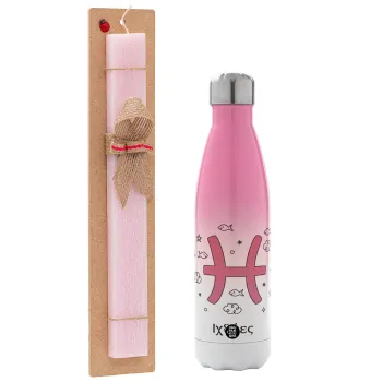Ζώδια Ιχθύες, Easter Set, Metallic pink/white (Stainless steel) thermos, double-walled, 500ml & aromatic flat Easter candle (30cm) (PINK)