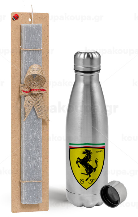 Ferrari, Easter Set, metallic Inox water bottle (750ml) & aromatic flat Easter candle (30cm) (GRAY)