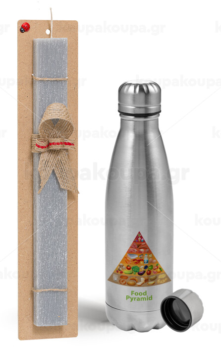 Food pyramid chart, Easter Set, metallic Inox water bottle (750ml) & aromatic flat Easter candle (30cm) (GRAY)